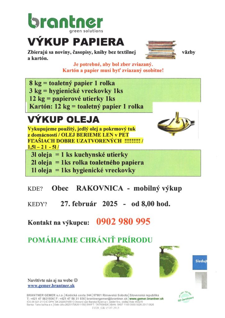 BRANTNER oznamuje občanom…