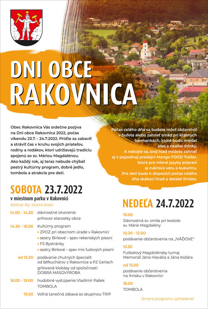 A máme tu opäť naše slávne Dni obce Rakovnica 2025. Srdečne pozývame všetkých občanov, rodákov a priaznivcov našej obce…