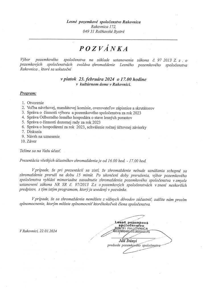 Lesná pozemková spoločnosť Rakovnica – pozvánka