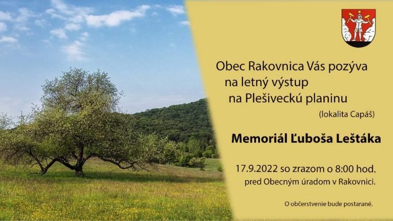 17.9.2022 so zrazom o 8:00 hod pred Obecným úradom v Rakovnici.