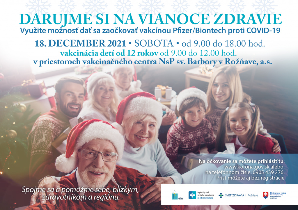 Možnosť dať sa zaočkovať aj bez registrácie 18.12.2021 v NsP sv.Barbory v RV…