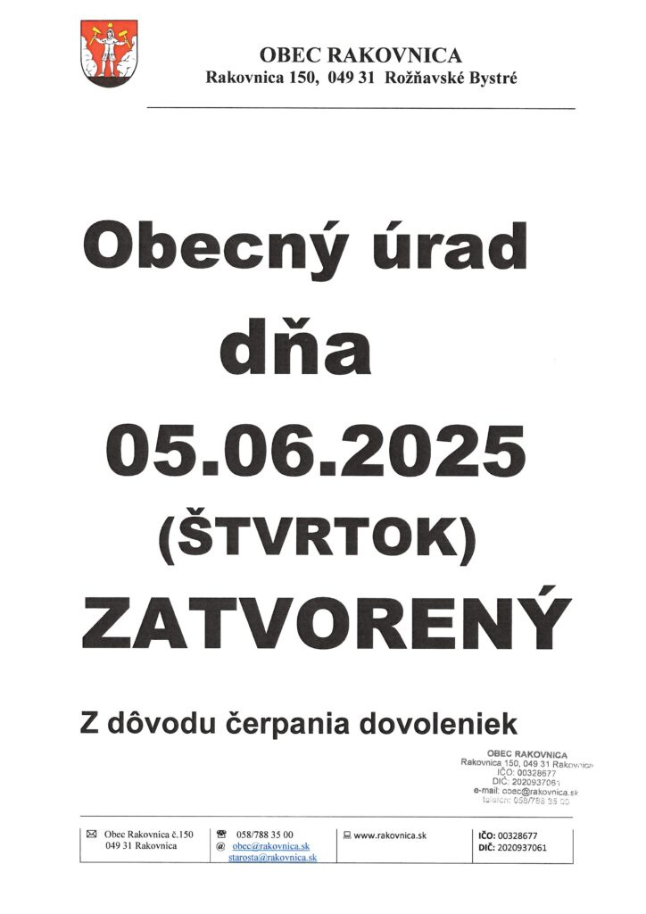 Oznam - Obecný úrad dňa 24.10.2025 zatvorený