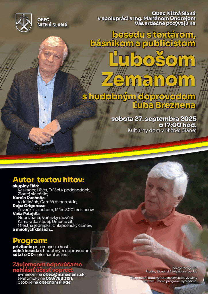 Obec Nižná Slaná pozýva na zaujímavú besedu s Ľubošom Zemanom…