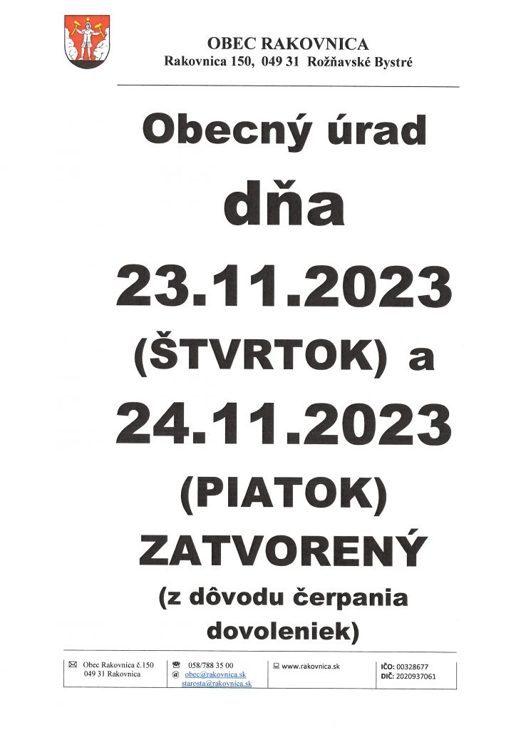Obecný úrad dňa 23.11-štvrtok a 24.11.-piatok ZATVORENÝ (z dôvodu čerpania dovolenky)
