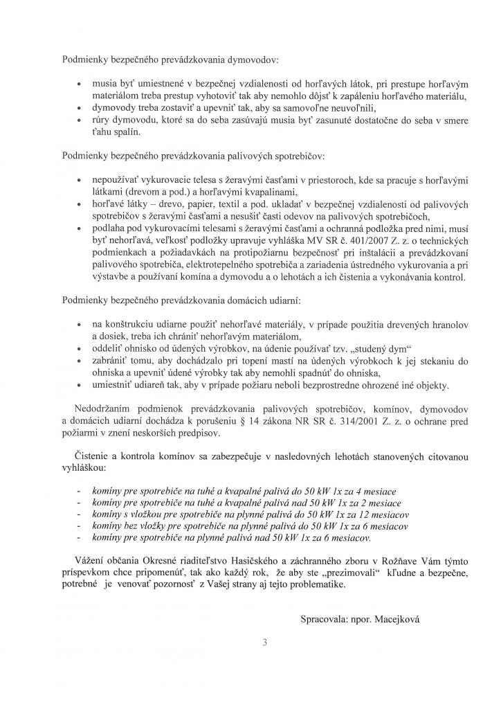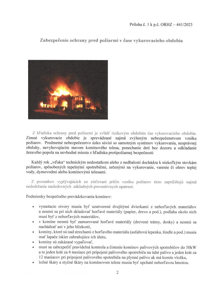 Opatrenia na zabezpečenie ochrany pred požiarmi v čase vykurovacieho obdobia na rok 2023