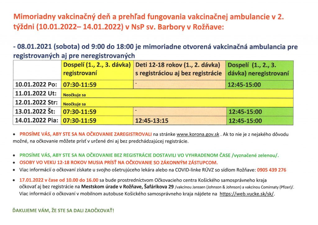 Otvorenie vakcinačného centra v Rožňave opäť v sobotu 8.január 2022