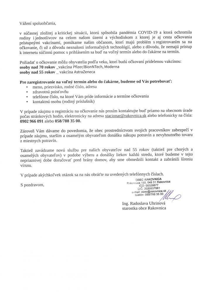 Pomoc občanom !!! s REGISTRÁCIOU na očkovanie proti COVID-19, s donáškou liekov, nákupov….