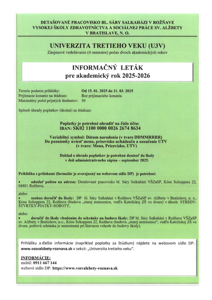 Do pozornosti informácia o možnosti štúdia na Univerzite tretieho veku na našom DP.