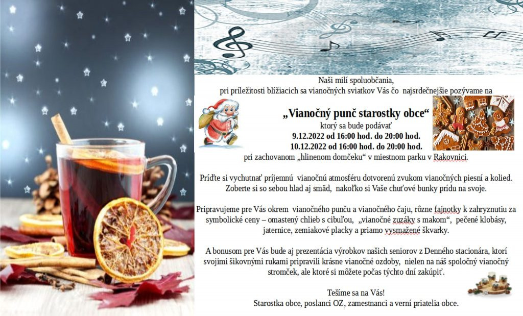 Pozvánka 9 a 10. decembra 2022 – Vianočný punč starostky obce…