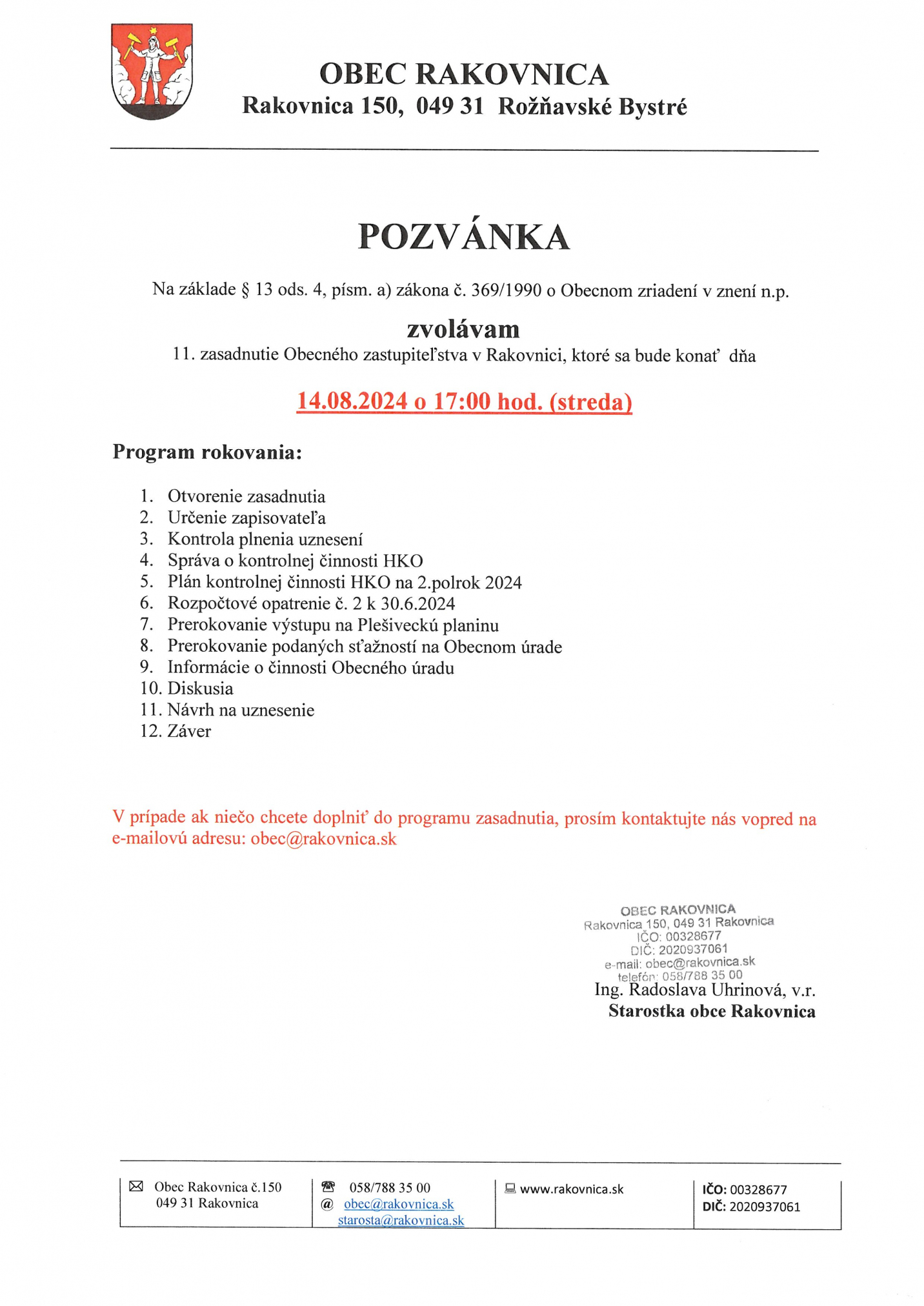 Dobrý deň, na stránke rakovnica.sk máte problém týkajúci sa: %issue% (Pozvánky OZ).