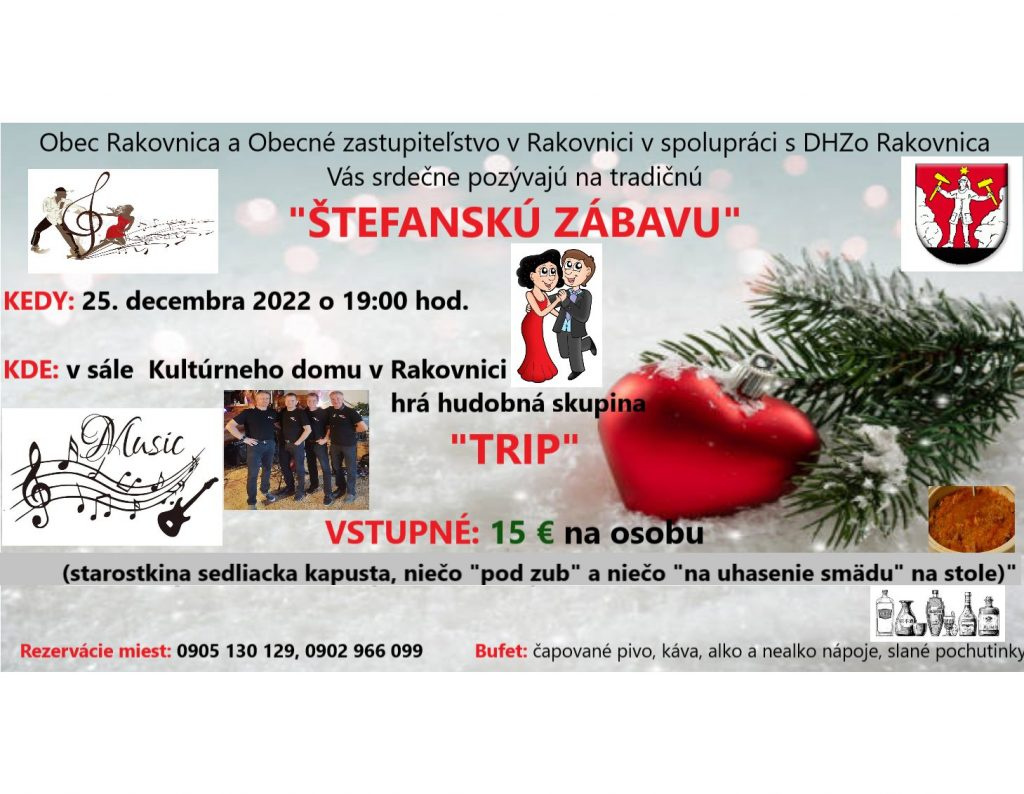 Pozvánka na Štefanskú zábavu 25.12.2022 o 19.00 h.