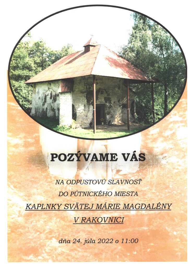 Pozvánka na sv.omšu pri kostolíku sv.Márie Magdalény v Rakovnici