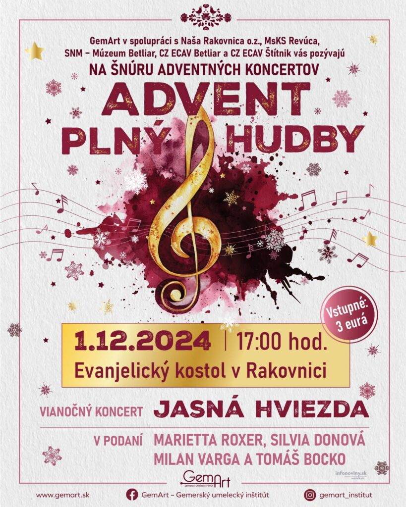 Pozvánka na Vianočný koncert v našom Evanjelickom kostole 1.12.2024 – NEDEĽA o 17.00 hod.