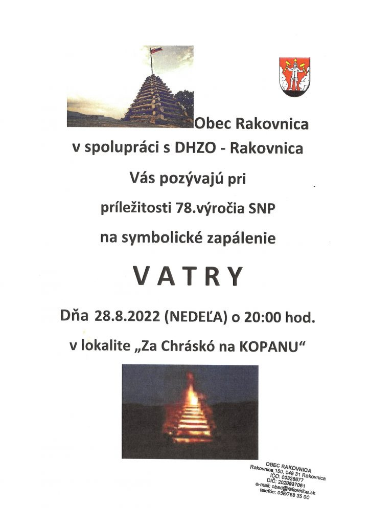 Pozývame všetkých na zapálenie symbolického ohňa pri príležitosti 78.výročia SNP …