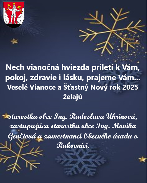 Prajeme všetkým občanom krásne a pokojné Vianoce a šťastný nový rok 2025