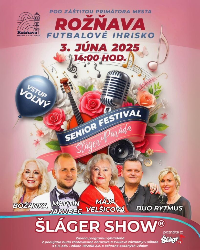 Primátor mesta Rožňava organizuje Šláger show pre všetkých seniorov 3.júna 2025 o 14:00 hod…
