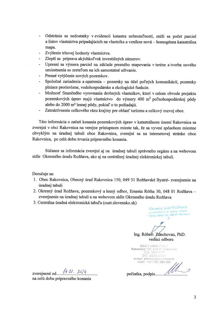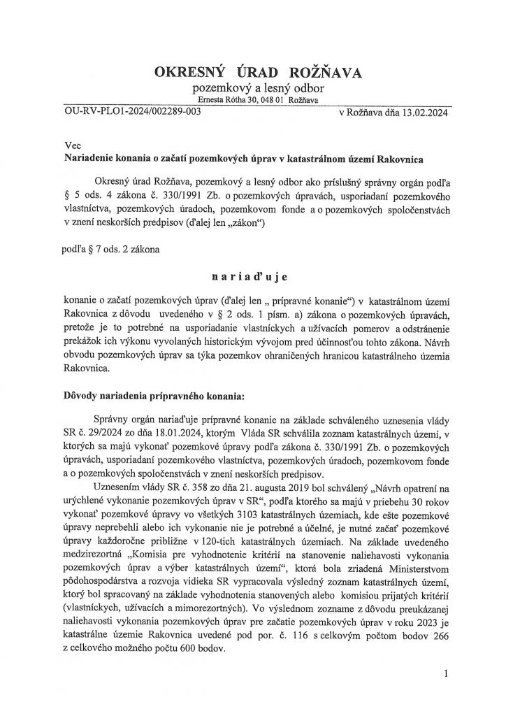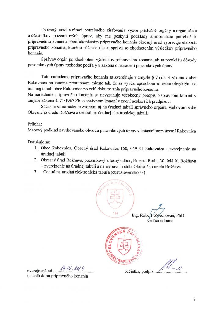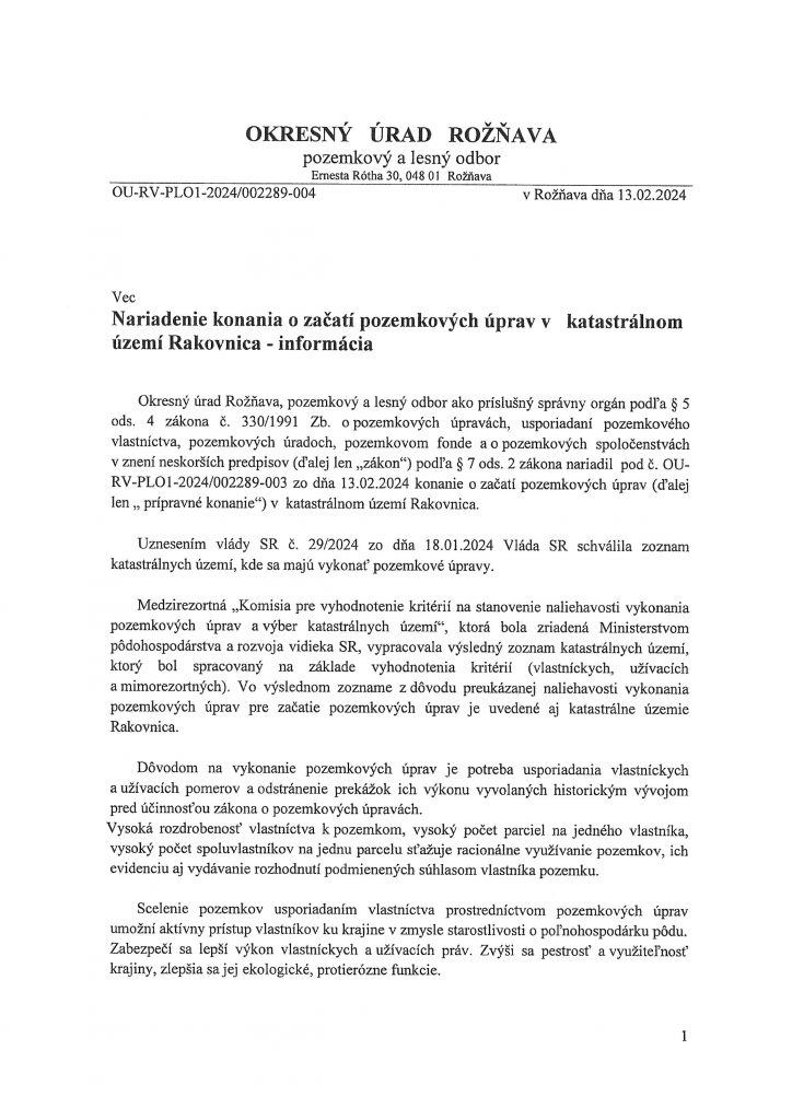 Prípravné konanie pozemkových úprav v katastrálnom území Rakovnica – zverejnenie