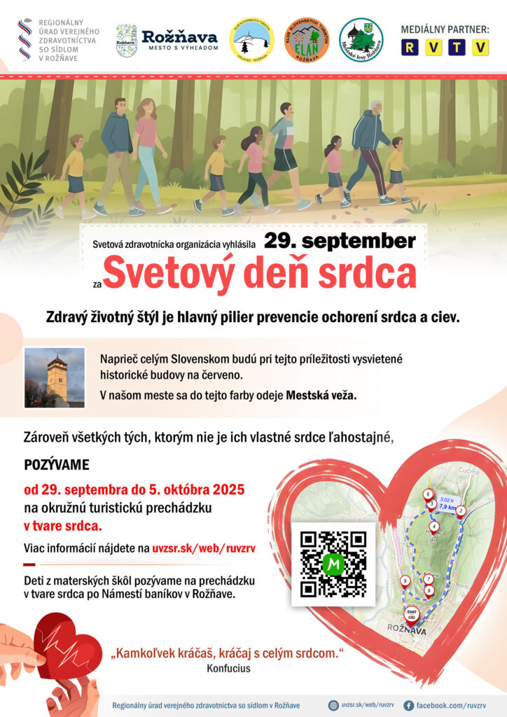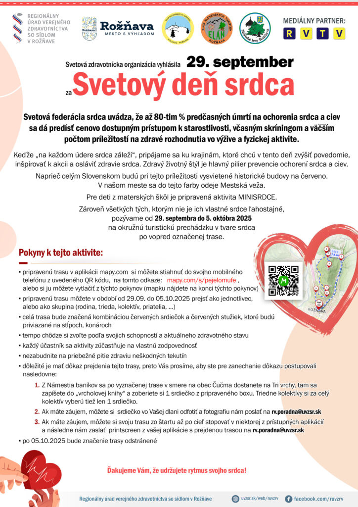 RUVZ v Rožňave pozýva na oslavu Svetového dňa srdca, ktorá bude trvať počas celého 40. kalendárneho týždňa, vrátane víkendu.