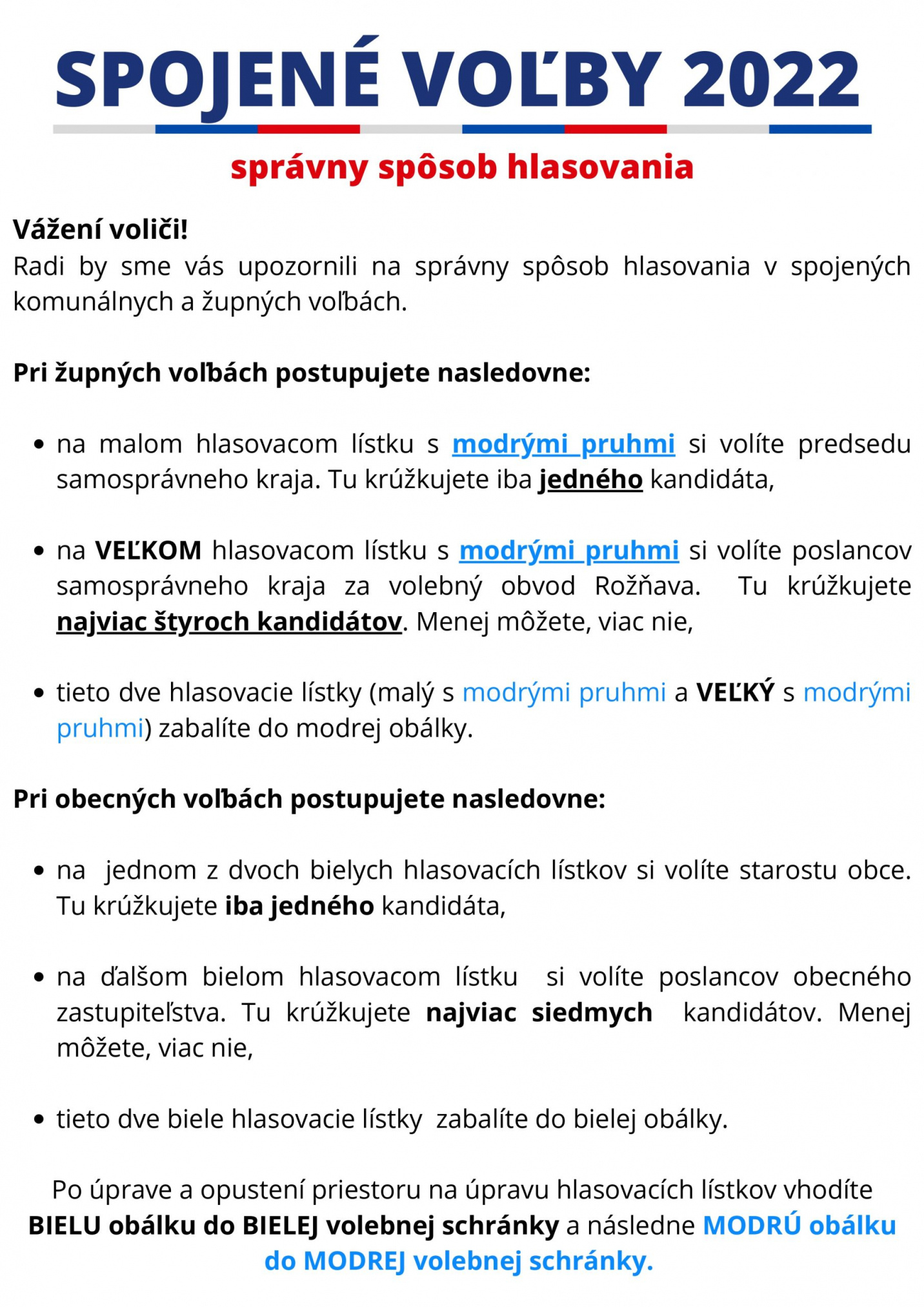 Voliči !!!Pozor si treba dať na farebné odlíšenie volieb ako i počty zakrúžkovaných kandidátov.