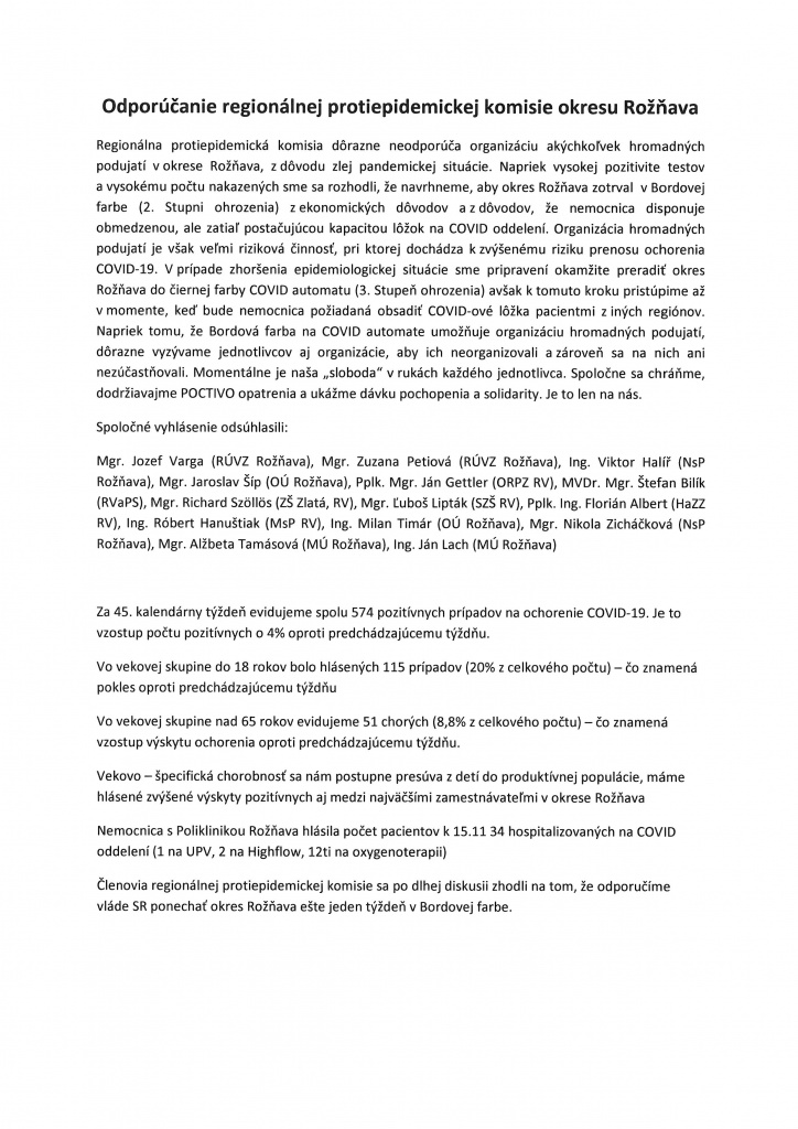 Súčasná situácia v okrese Rožňava a odporúčanie regionálnej protiepidemickej komisie v Rožňave