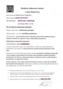 Testovanie na COVID-19 v sobotu 06.03.2021 od 07.00 – 12.00 h.