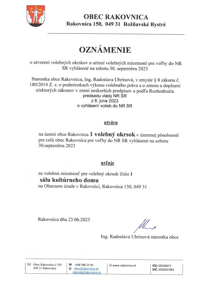 Určenie volebného okrsku a volebnej miestnosti vo voľbách do NRSR 2023