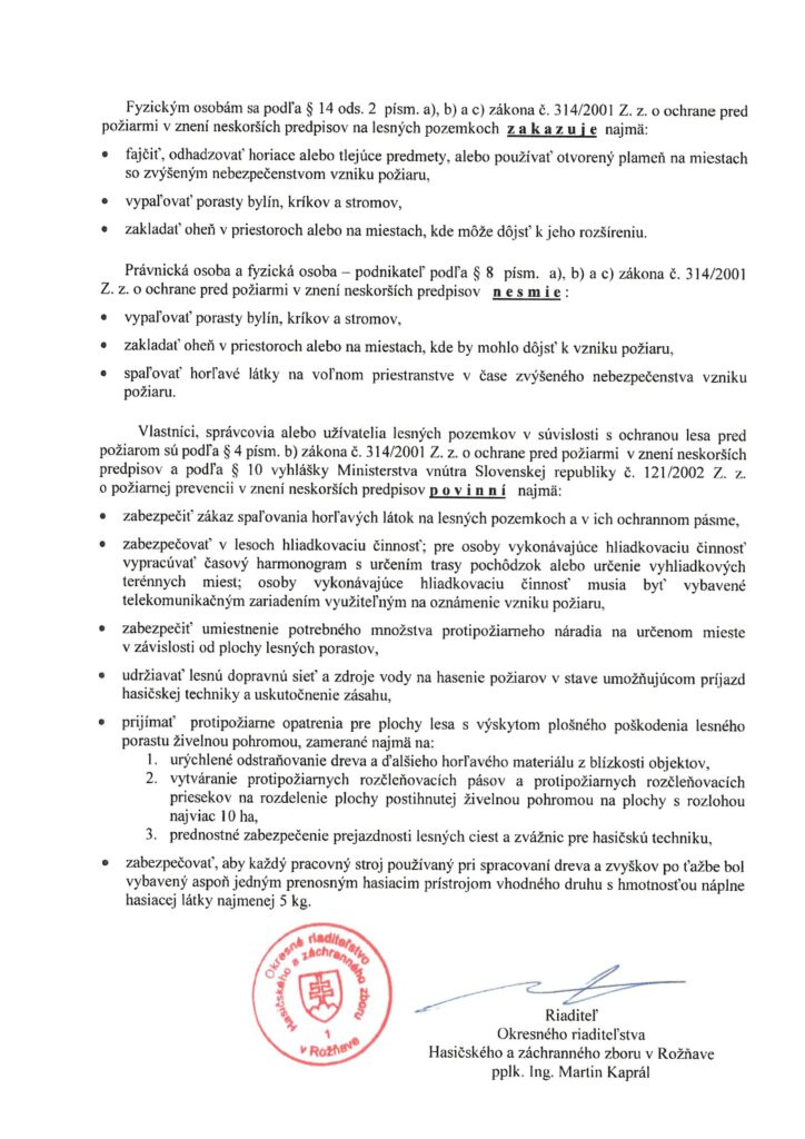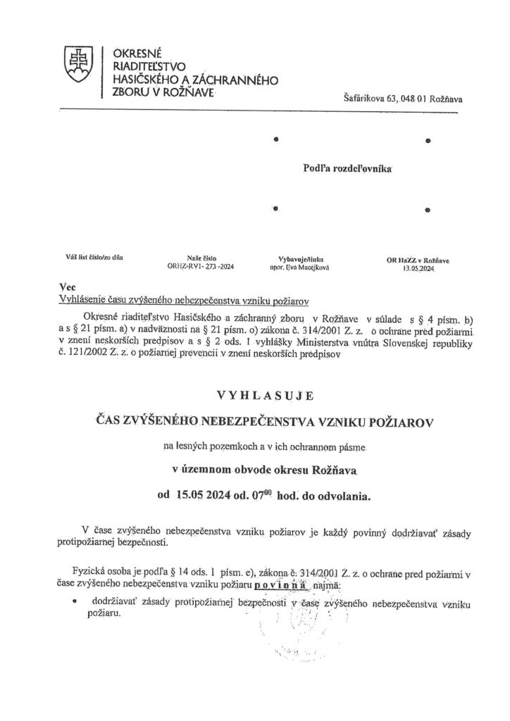 Vyhlásenie času zvýšeného nebezpečenstva vzniku požiaru