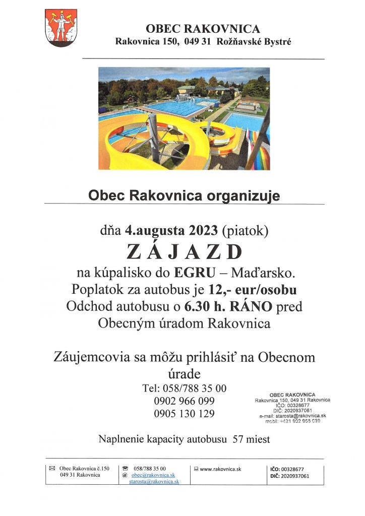 Zájazd na kúpalisko do Egru – Maďarsko PIATOK 4.augusta 2023 o 6.30 h.