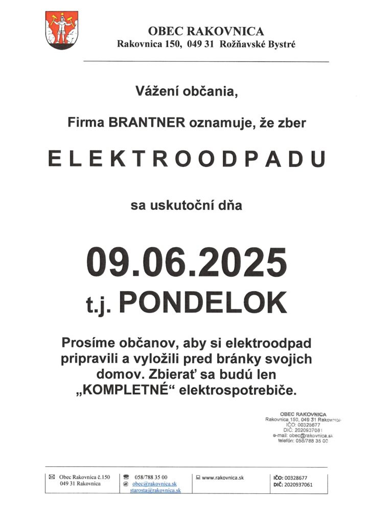 Zber ELEKTROODPADU – pondelok 9.6.2025