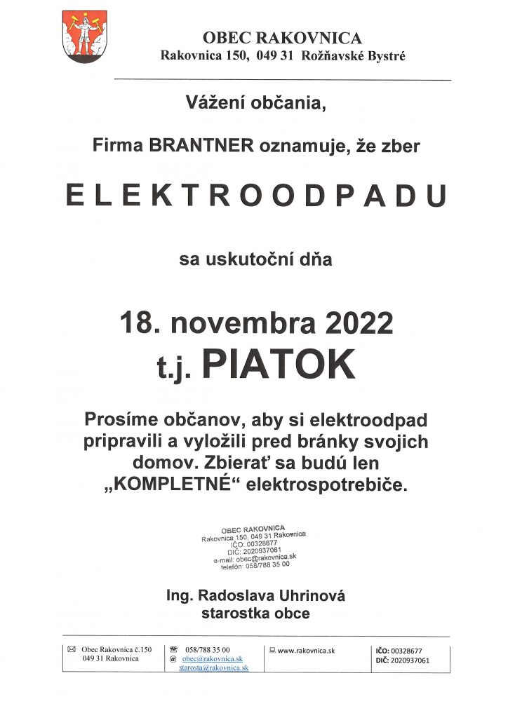 Zber ELEKTROODPADU 18.11. 2022