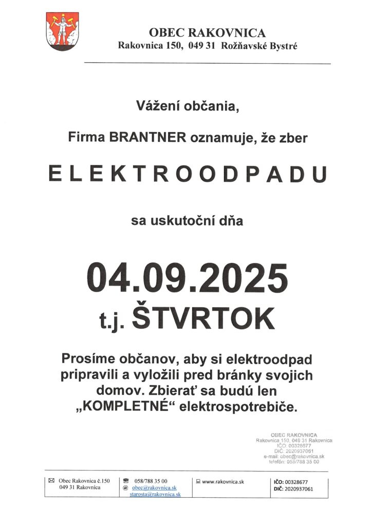 Zber ELEKTROODPADU – pondelok 9.6.2025