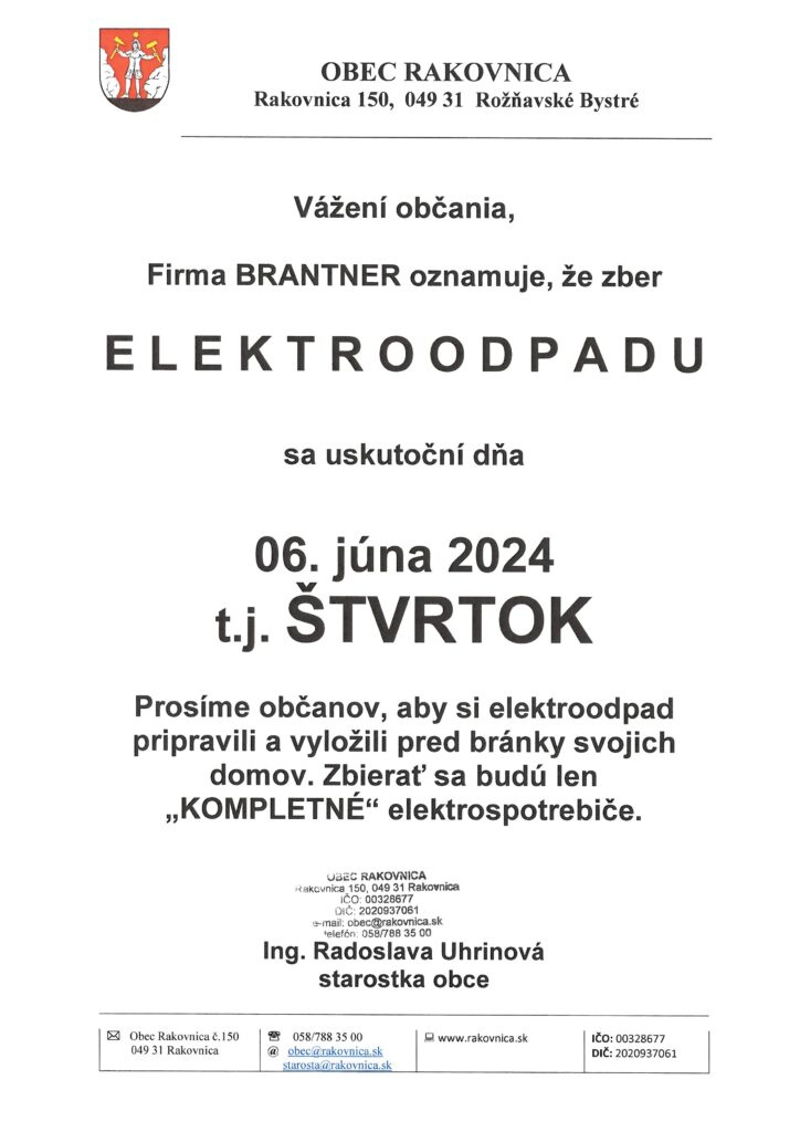 Zber ELEKTROODPADU – pondelok 9.6.2025