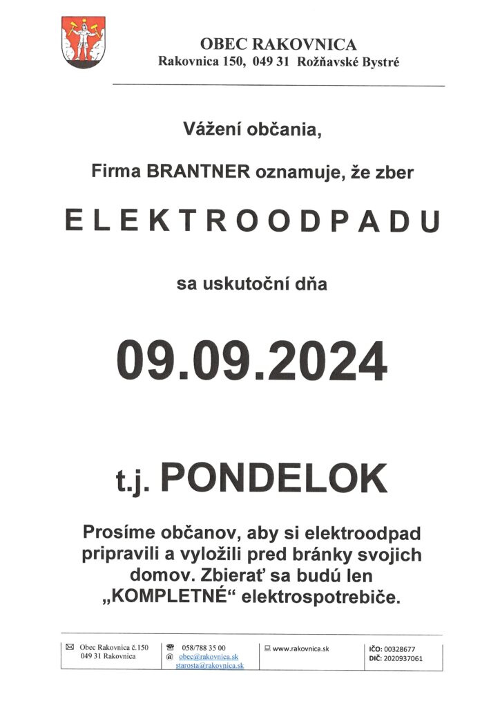 Zber ELEKTROODPADU – pondelok 9.6.2025