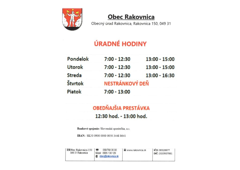 Zmena otváracích hodín na Obecnom úrade v Rakovnici